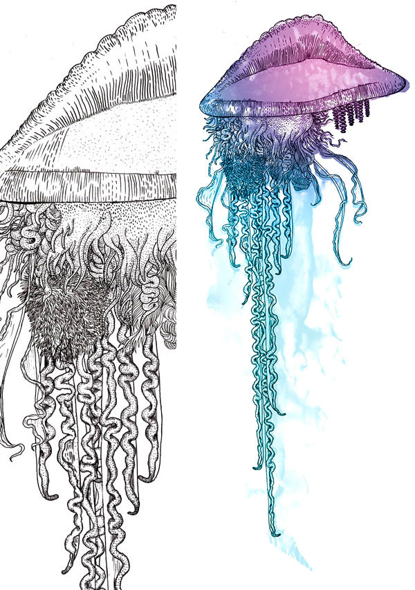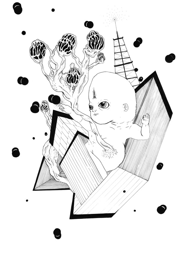 Ilustrações criadas a partir de técnicas múltiplas.